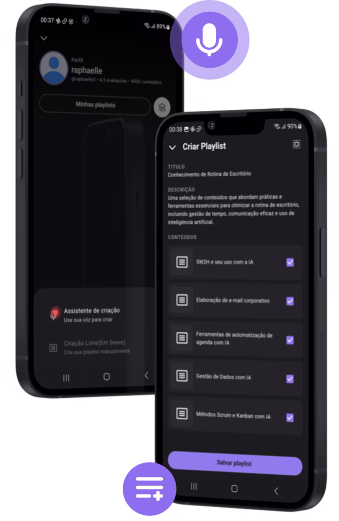 Personalize sua jornada de conhecimento usando sua voz. Diga o que quer aprender, e nossa IA cria a playlist ideal para você e a sua empresa.